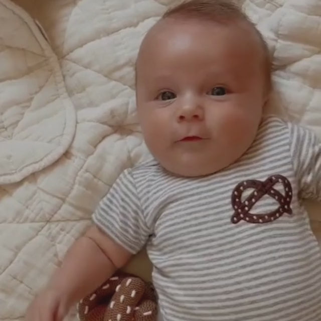 A tasty treat for little foodies. This adorable set includes a cozy organic cotton onesie and a hand-knit rattle, both as soft as they are stylish. So cute, you’ll want seconds!